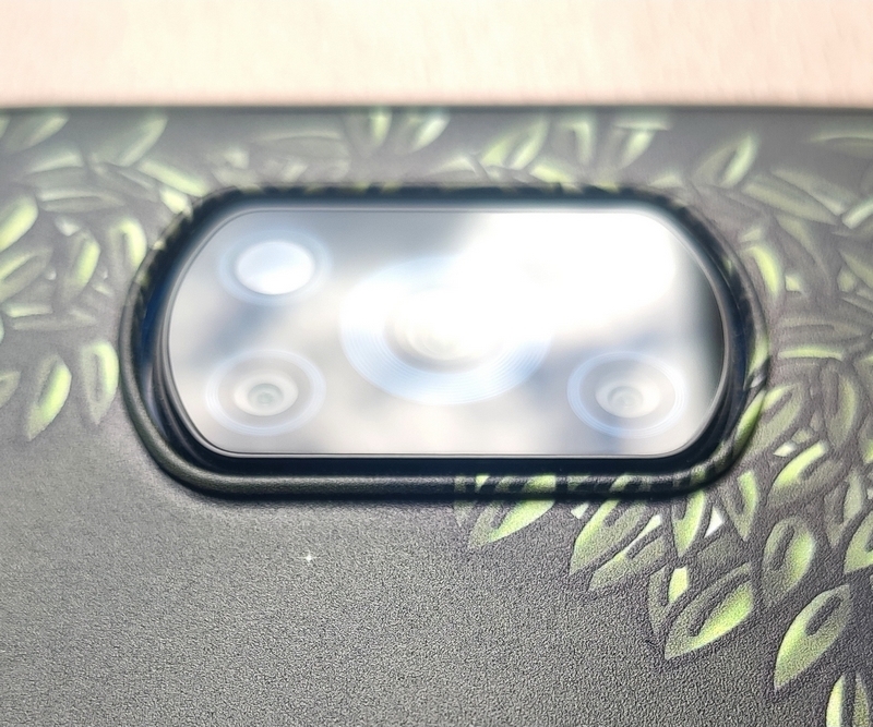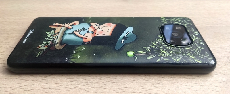 Lorsque j’ai acheté mon téléphone, celui ci était fourni avec une coque dont l’ouverture pour l’objectif était ronde (Voir la photo en haut de l’article, avec le dos bleu). Ce qui est génial avec la coque DeinDesign c’est que l’ouverture épouse parfaitement l’objectif, il y à un petit boudin en relief comme contour, qui lui même est recouvert par l’illustration, pour une finition impeccable. Pour les curieux qui se demande si il y à aussi un petit boudin qui recouvre le tour du téléphone sur la face avant du téléphone, la réponse est oui. D’ailleurs la coque est exactement de la même qualité que celle d’origine, elle ne glisse pas en main, on sent qu’on à quelque chose de tout aussi costaud mais avec un design rien qu’a soi. Une dernière petite chose, même si je me doute que vous n’avez pas tous un Poco X3 nfc, c’est que sur la coque d’origine il y avait un petit capuchon cache-poussière pour la prise de chargement, mais sur celle de DeinDesign il n’y en à pas, cela me dérange pas du tout mais c’est une chose que j’ai constaté en découvrant la coque, je le précise pour ceux qui estiment que c’est important les capuchons cache-poussières, et ils ont raison, ne nous fâchons pas…